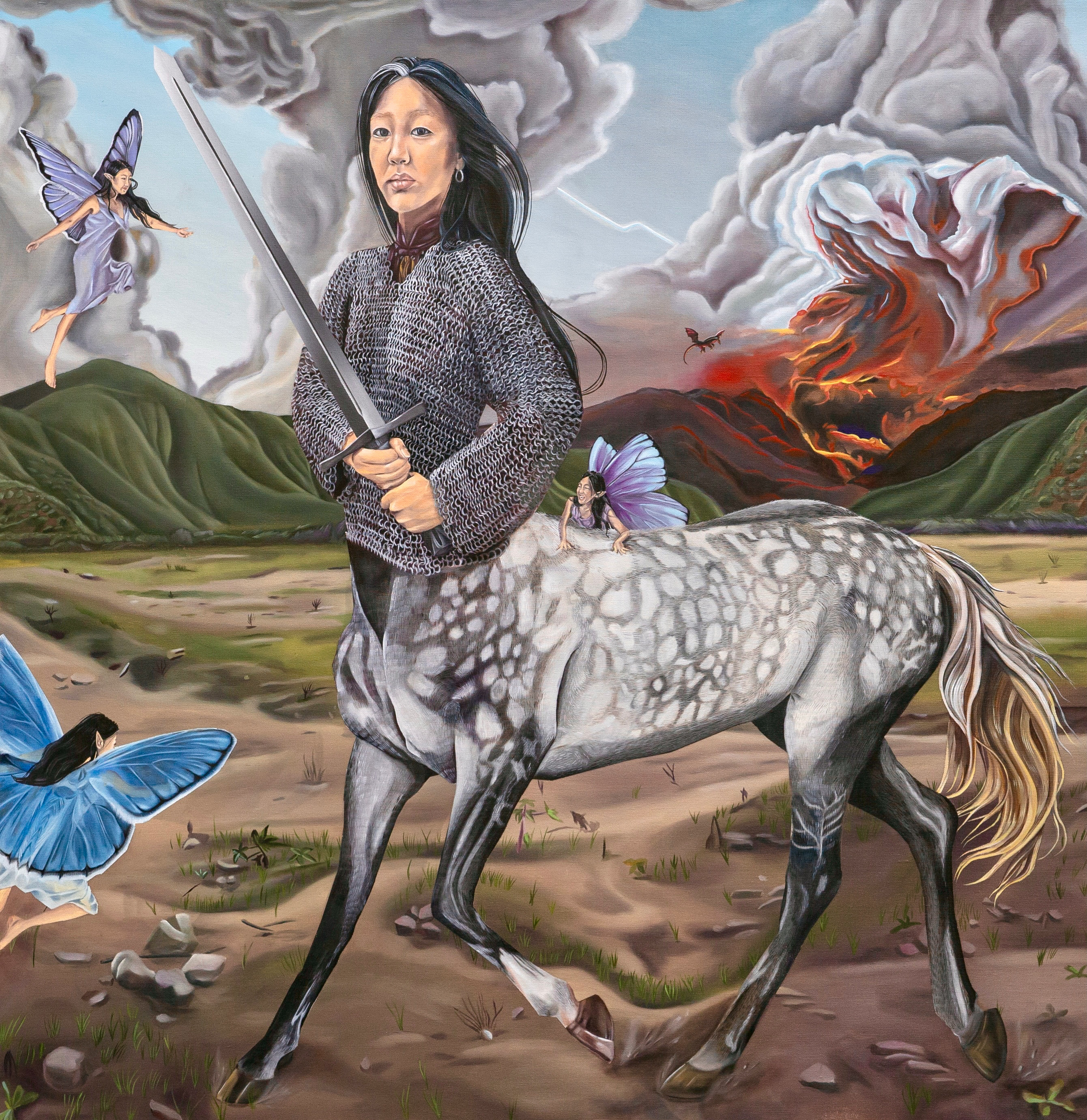 oil on linen, nickel chains